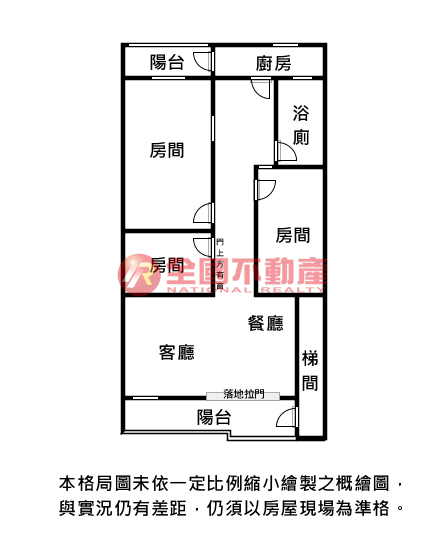 ※本格局圖係未依實際比例繪製之概繪圖。其比例、座向、格局、形狀等,仍須以房屋現場為準。