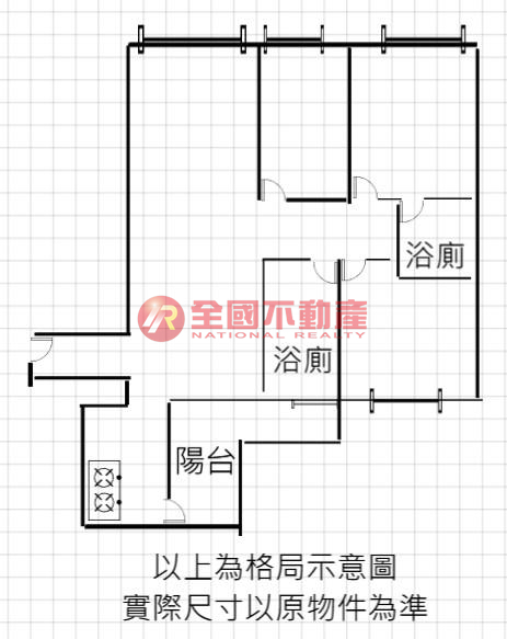 ※本格局圖係未依實際比例繪製之概繪圖。其比例、座向、格局、形狀等,仍須以房屋現場為準。