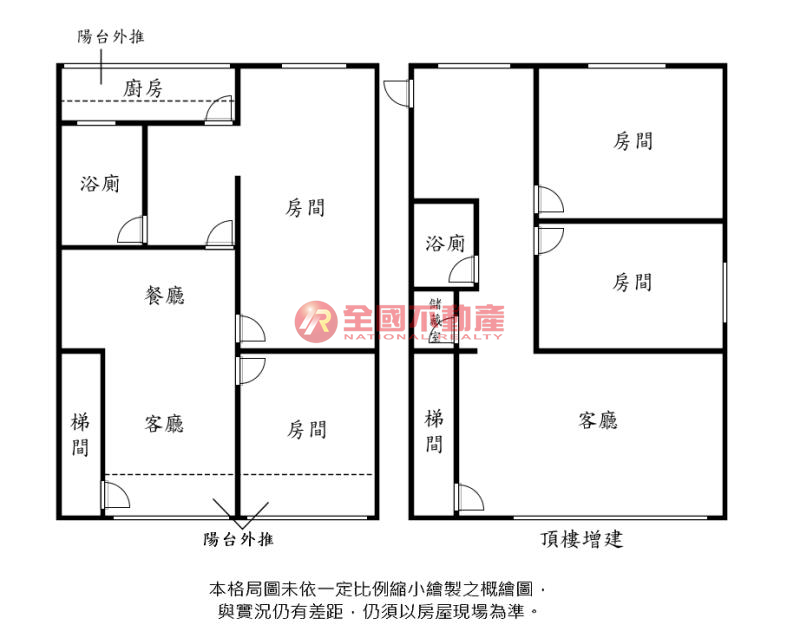 ※本格局圖係未依實際比例繪製之概繪圖。其比例、座向、格局、形狀等,仍須以房屋現場為準。