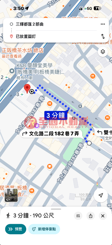 捷運江子翠站依Google地圖約190公尺(3分鐘)