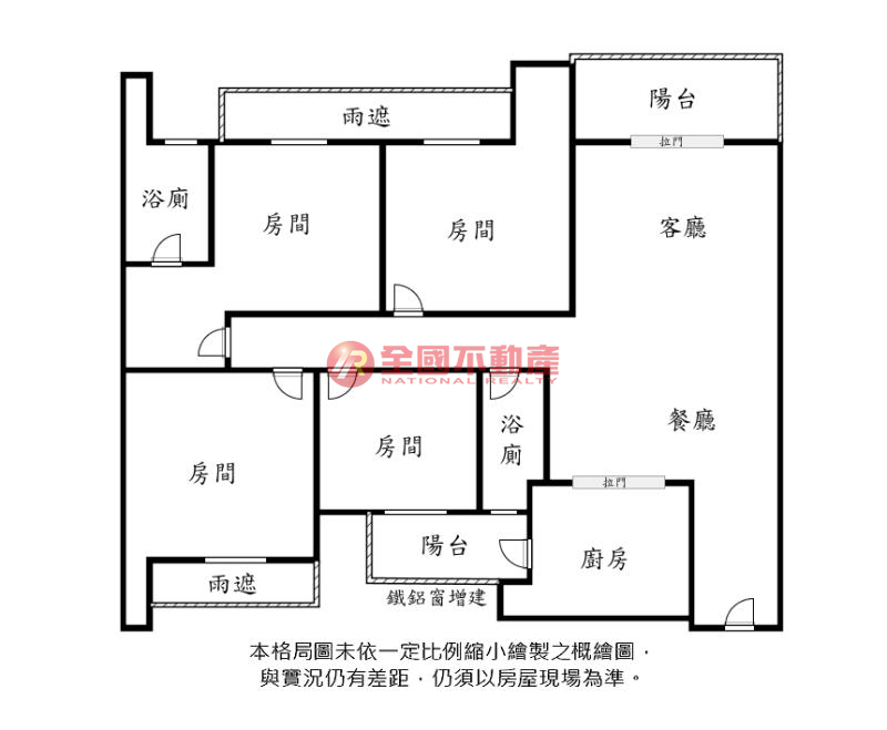 ※本格局圖係未依實際比例繪製之概繪圖。其比例、座向、格局、形狀等,仍須以房屋現場為準。