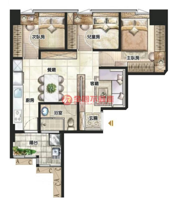 3房2廳1衛1陽台