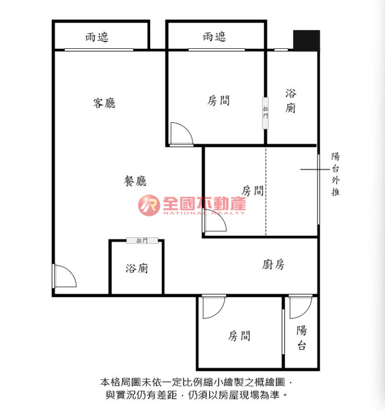※本格局圖係未依實際比例繪製之概繪圖。其比例、座向、格局、形狀等,仍須以房屋現場為準。