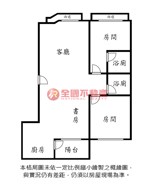 ※本格局圖係未依實際比例繪製之概繪圖。其比例、座向、格局、形狀等,仍須以房屋現場為準。