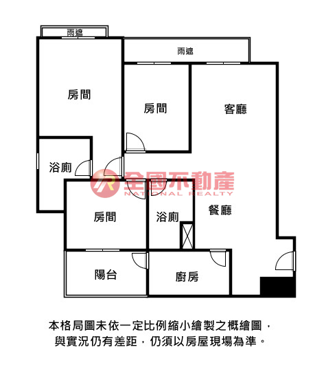 ※本格局圖係未依實際比例繪製之概繪圖。其比例、座向、格局、形狀等,仍須以房屋現場為準。