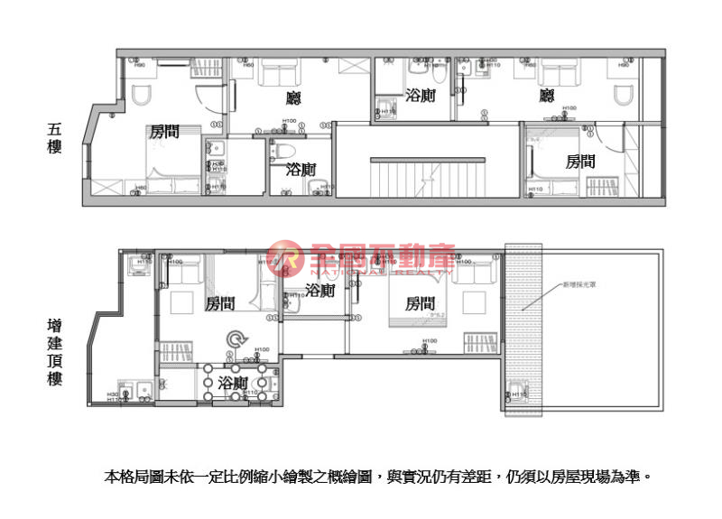 ※本格局圖係未依實際比例繪製之概繪圖。其比例、座向、格局、形狀等,仍須以房屋現場為準。