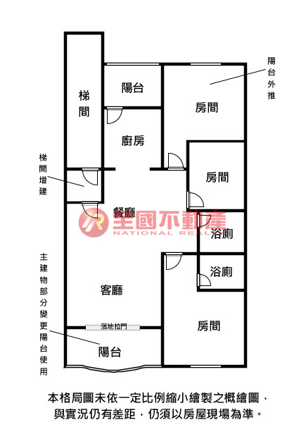 ※本格局圖係未依實際比例繪製之概繪圖。其比例、座向、格局、形狀等,仍須以房屋現場為準。