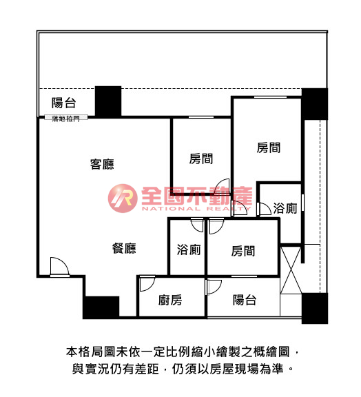 ※本格局圖係未依實際比例繪製之概繪圖。其比例、座向、格局、形狀等,仍須以房屋現場為準。