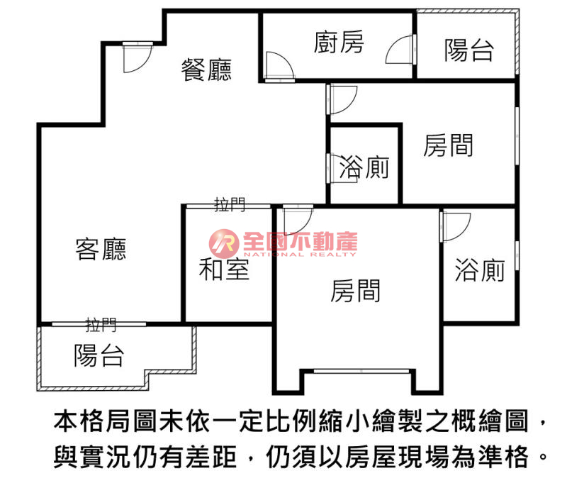 ※本格局圖係未依實際比例繪製之概繪圖。其比例、座向、格局、形狀等,仍須以房屋現場為準。