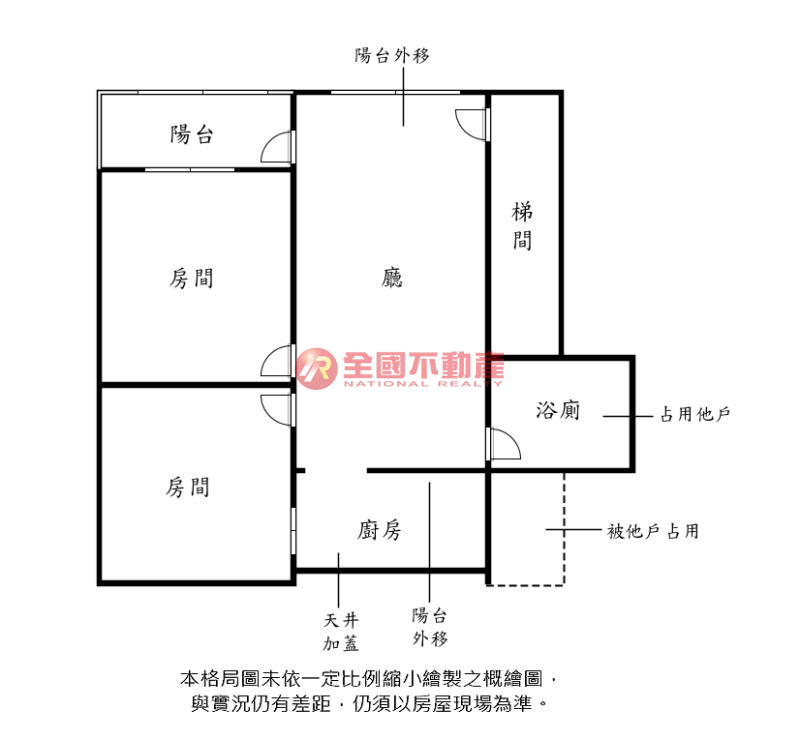 ※本格局圖係未依實際比例繪製之概繪圖。其比例、座向、格局、形狀等,仍須以房屋現場為準。