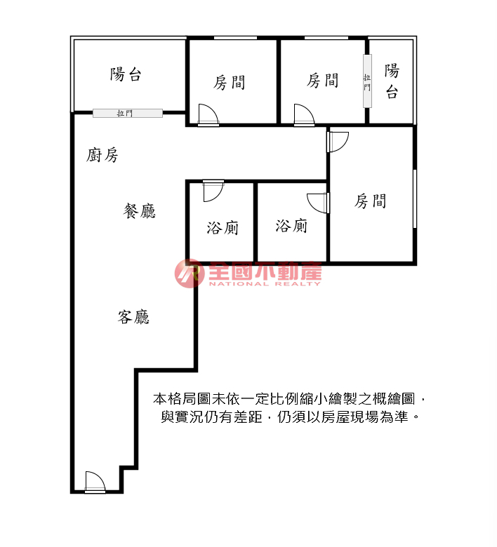 ※本格局圖係未依實際比例繪製之概繪圖。其比例、座向、格局、形狀等,仍須以房屋現場為準。