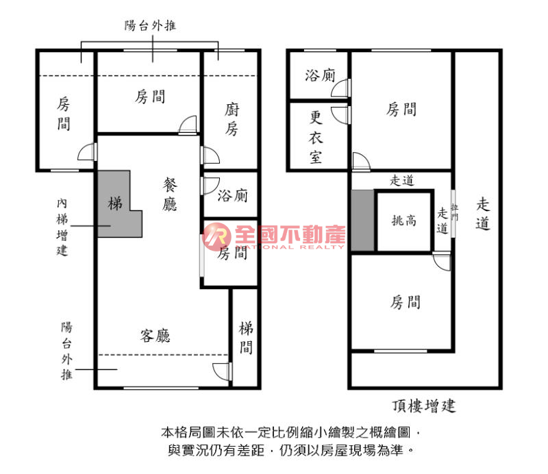 ※本格局圖係未依實際比例繪製之概繪圖。其比例、座向、格局、形狀等,仍須以房屋現場為準。
