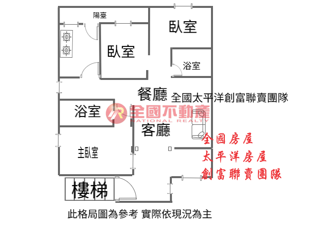※本格局圖係未依實際比例繪製之概繪圖。其比例、座向、格局、形狀等,仍須以房屋現場為準。