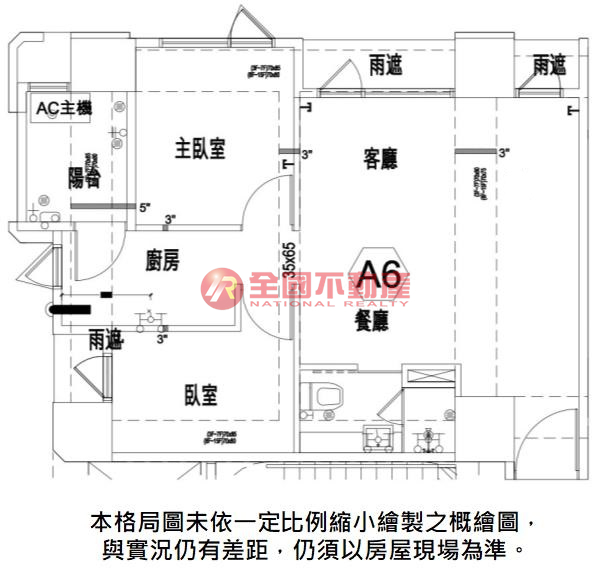 ※本格局圖係未依實際比例繪製之概繪圖。其比例、座向、格局、形狀等,仍須以房屋現場為準。