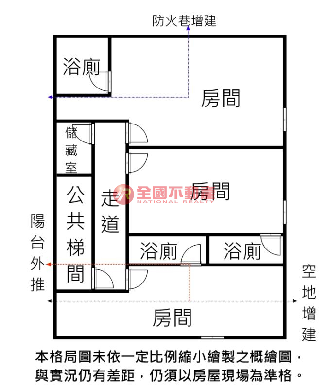 ※本格局圖係未依實際比例繪製之概繪圖。其比例、座向、格局、形狀等,仍須以房屋現場為準。