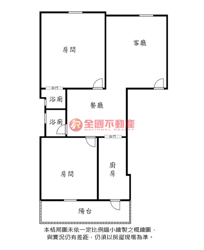 ※本格局圖係未依實際比例繪製之概繪圖。其比例、座向、格局、形狀等,仍須以房屋現場為準。