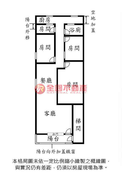 ※本格局圖係未依實際比例繪製之概繪圖。其比例、座向、格局、形狀等,仍須以房屋現場為準。