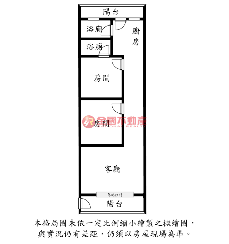 ※本格局圖係未依實際比例繪製之概繪圖。其比例、座向、格局、形狀等,仍須以房屋現場為準。