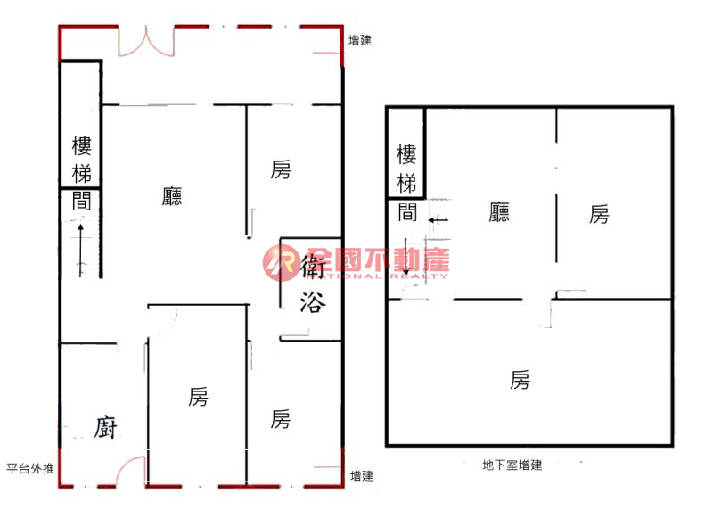 3房間格局大B1增建無權狀使用20坪2房1廳,好規劃好利用