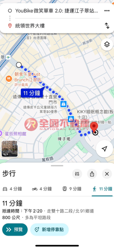 捷運江子翠站依Google地圖800公尺(步行約11分鐘)