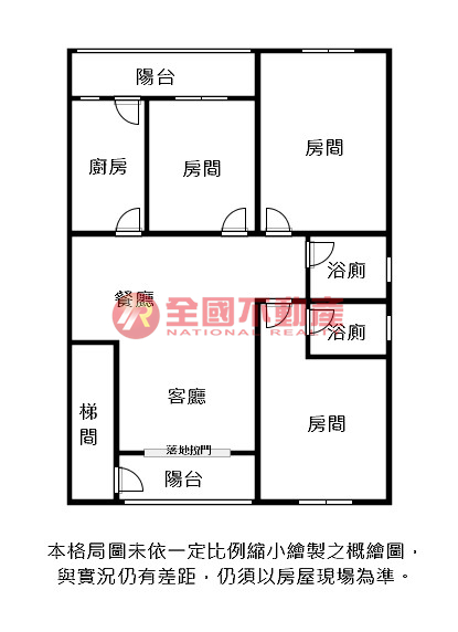 ※本格局圖係未依實際比例繪製之概繪圖。其比例、座向、格局、形狀等,仍須以房屋現場為準。