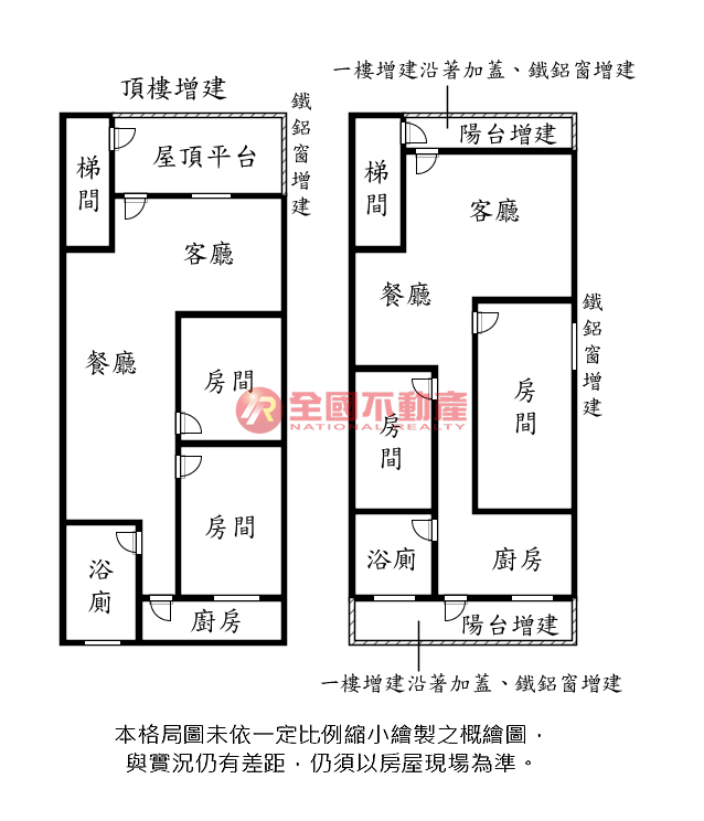 ※本格局圖係未依實際比例繪製之概繪圖。其比例、座向、格局、形狀等,仍須以房屋現場為準。