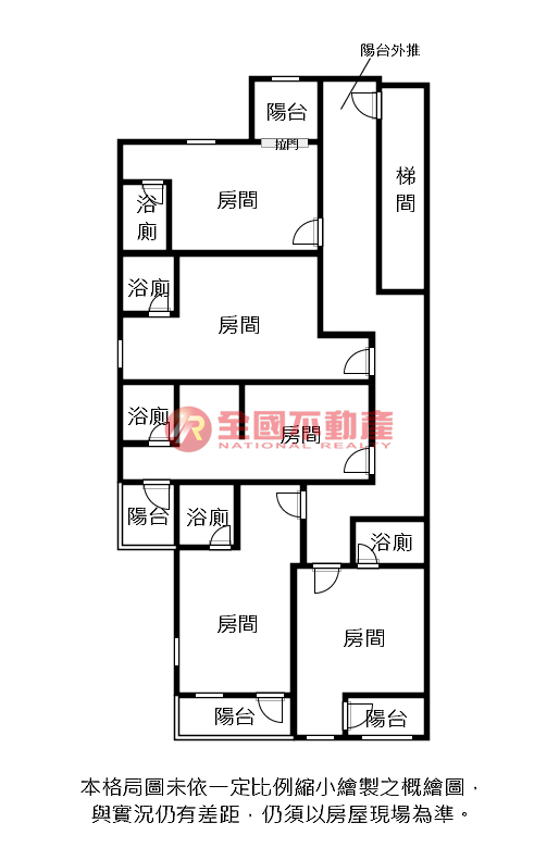 ※本格局圖係未依實際比例繪製之概繪圖。其比例、座向、格局、形狀等,仍須以房屋現場為準。