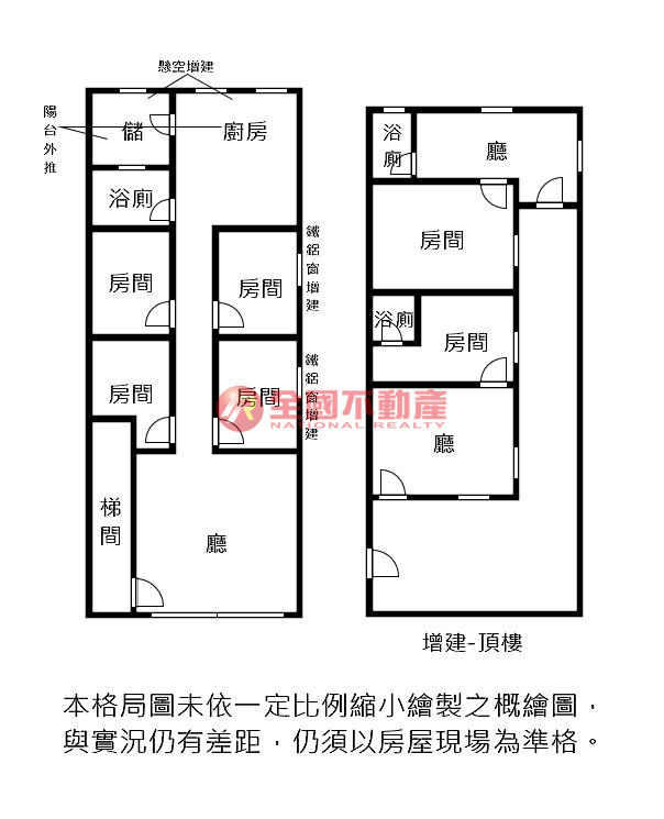 ※本格局圖係未依實際比例繪製之概繪圖。其比例、座向、格局、形狀等,仍須以房屋現場為準。