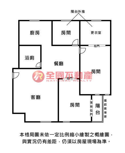 ※本格局圖係未依實際比例繪製之概繪圖。其比例、座向、格局、形狀等,仍須以房屋現場為準。