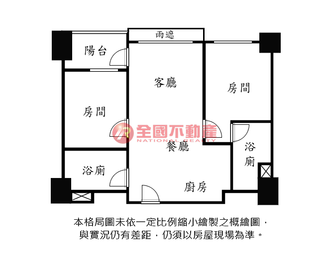 ※本格局圖係未依實際比例繪製之概繪圖。其比例、座向、格局、形狀等,仍須以房屋現場為準。