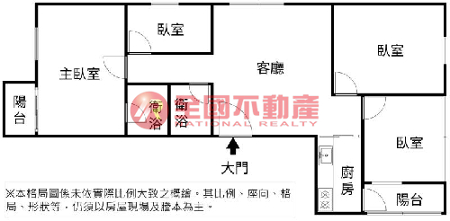 ※本格局圖係未依實際比例繪製之概繪圖。其比例、座向、格局、形狀等,仍須以房屋現場為準。