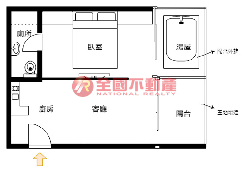格局:1房1廳1衛1陽台