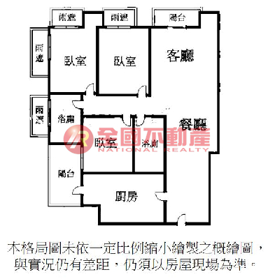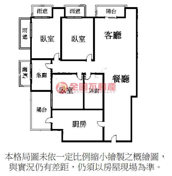 ※本格局圖係未依實際比例繪製之概繪圖。其比例、座向、格局、形狀等,仍須以房屋現場為準。