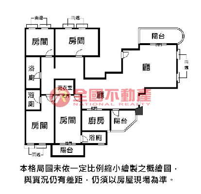 ※本格局圖係未依實際比例繪製之概繪圖。其比例、座向、格局、形狀等,仍須以房屋現場為準。