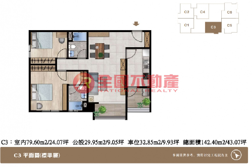 格局:3房2廳2衛1廚2陽台+平面車位