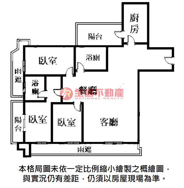 ※本格局圖係未依實際比例繪製之概繪圖。其比例、座向、格局、形狀等,仍須以房屋現場為準。