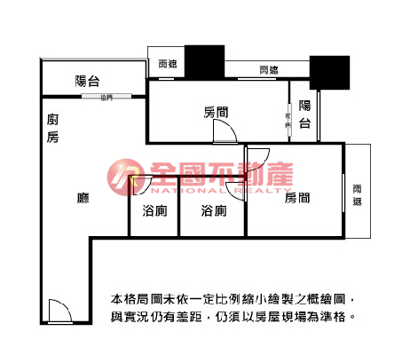 ※本格局圖係未依實際比例繪製之概繪圖。其比例、座向、格局、形狀等,仍須以房屋現場為準。