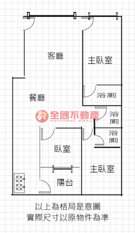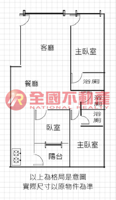 ※本格局圖係未依實際比例繪製之概繪圖。其比例、座向、格局、形狀等,仍須以房屋現場為準。