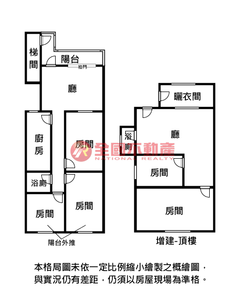 ※本格局圖係未依實際比例繪製之概繪圖。其比例、座向、格局、形狀等,仍須以房屋現場為準。