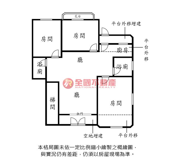 ※本格局圖係未依實際比例繪製之概繪圖。其比例、座向、格局、形狀等,仍須以房屋現場為準。