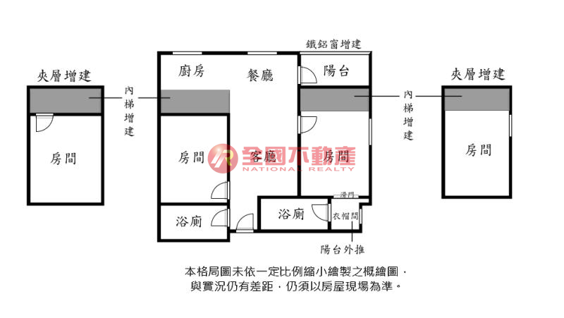 ※本格局圖係未依實際比例繪製之概繪圖。其比例、座向、格局、形狀等,仍須以房屋現場為準。