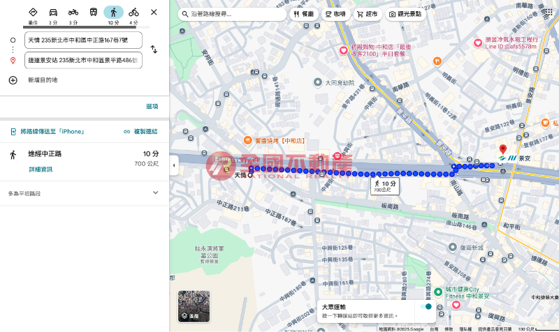 捷運景安站約700公尺,依Google步行約10分鐘