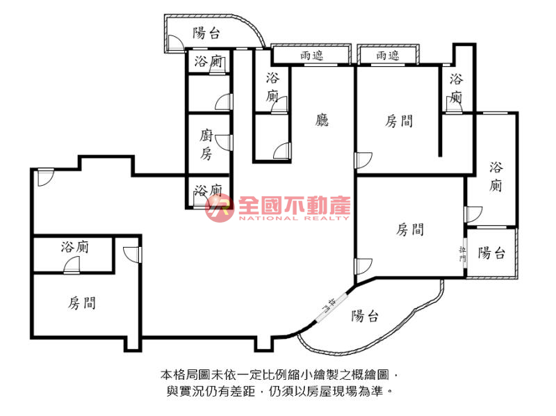 ※本格局圖係未依實際比例繪製之概繪圖。其比例、座向、格局、形狀等,仍須以房屋現場為準。