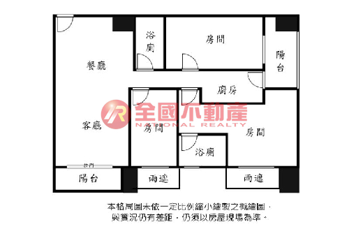 ※本格局圖係未依實際比例繪製之概繪圖。其比例、座向、格局、形狀等,仍須以房屋現場為準。