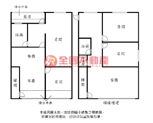 ※本格局圖係未依實際比例繪製之概繪圖。其比例、座向、格局、形狀等,仍須以房屋現場為準。