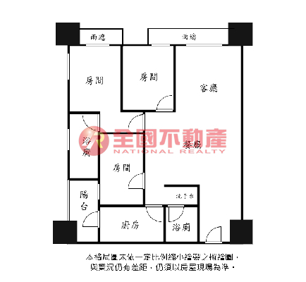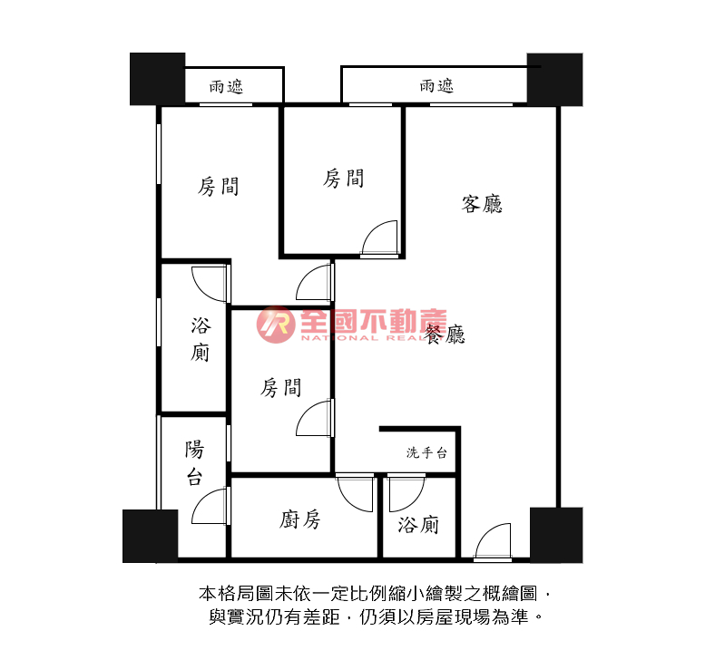 ※本格局圖係未依實際比例繪製之概繪圖。其比例、座向、格局、形狀等,仍須以房屋現場為準。