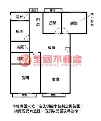 ※本格局圖係未依實際比例繪製之概繪圖。其比例、座向、格局、形狀等,仍須以房屋現場為準。