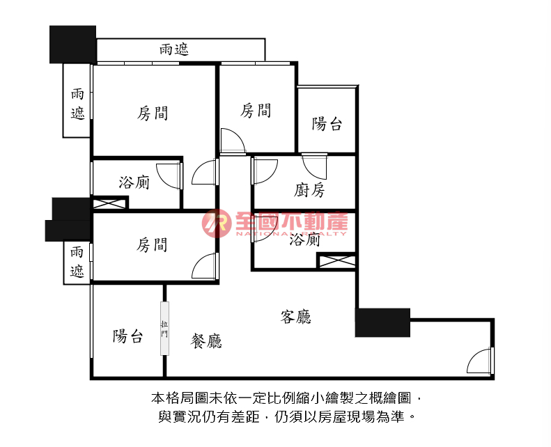 ※本格局圖係未依實際比例繪製之概繪圖。其比例、座向、格局、形狀等,仍須以房屋現場為準。