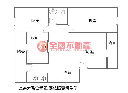 ※本格局圖係未依實際比例繪製之概繪圖。其比例、座向、格局、形狀等,仍須以房屋現場為準。