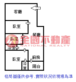 ※本格局圖係未依實際比例繪製之概繪圖。其比例、座向、格局、形狀等,仍須以房屋現場為準。